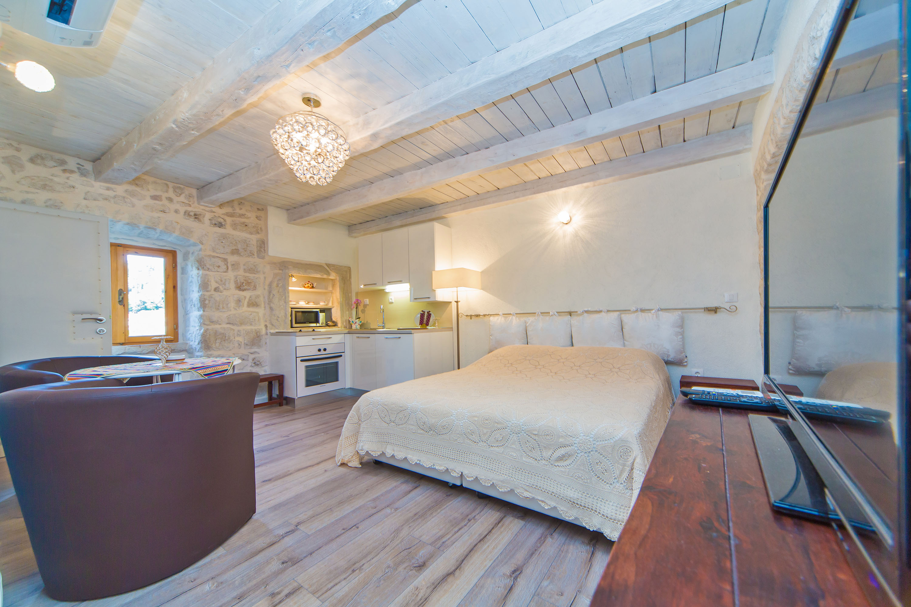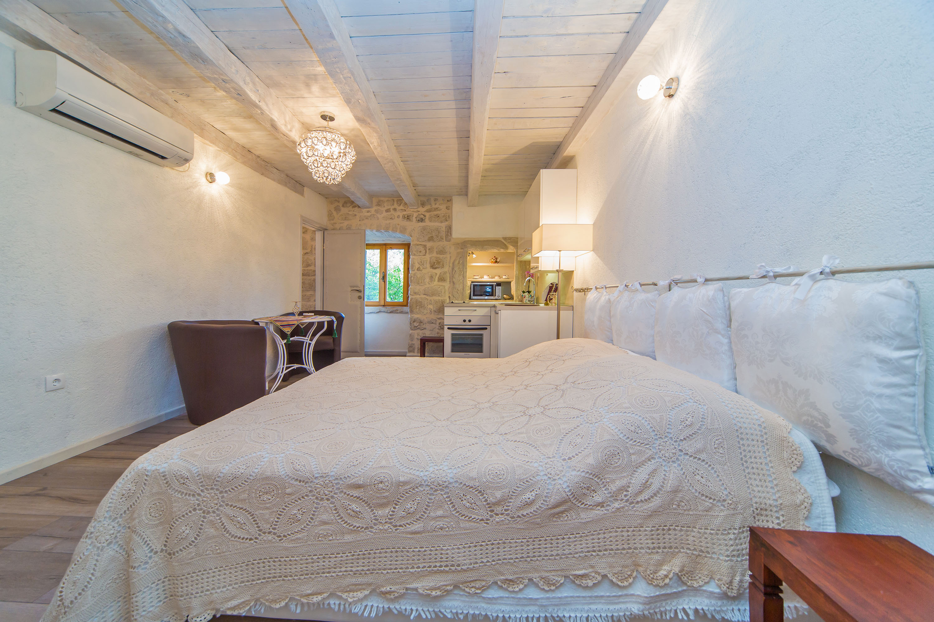 Me and my husband were glad to stay in Ivo Klaic`s country house at room Ivana. Because we were only guests, we were offered an opportunity to use another room too, but Ivana was enough to two of us. The heating was useful because of the uncertain spring weather. The little kitchen corner had a stove, oven, fridge and microwave. The room and the house generally was wonderfully renovated, very beautiful, clean, cosy and peaceful. The Konavle countryside was nice area to drive around, traditions were interesting and the beach nearby the house was amazing. It was great to meet Ivo and his family. Their were friendly and helpful and their hospitality was over the top. Romantic place for couples and family-friendly too. We really felt welcome!